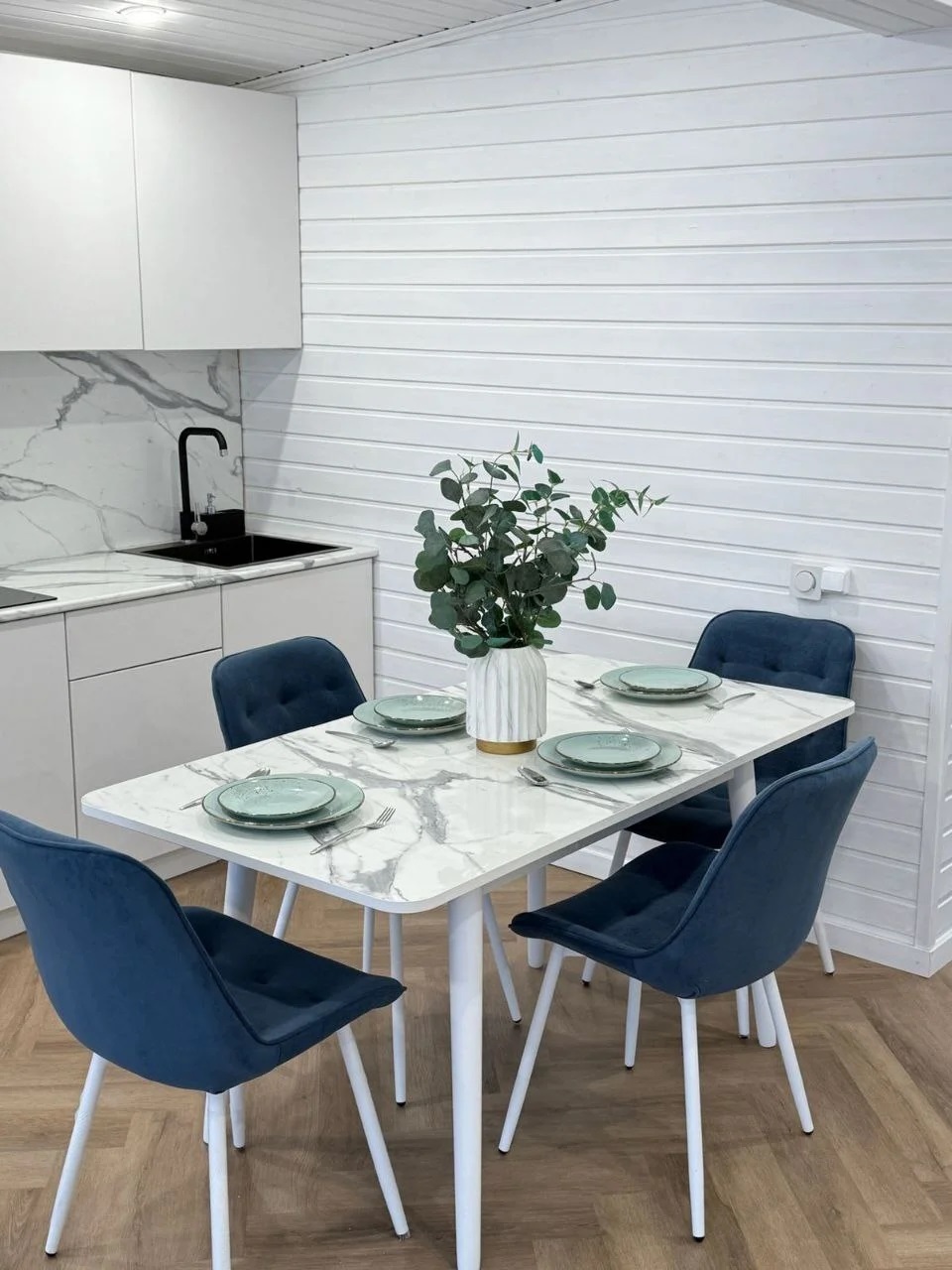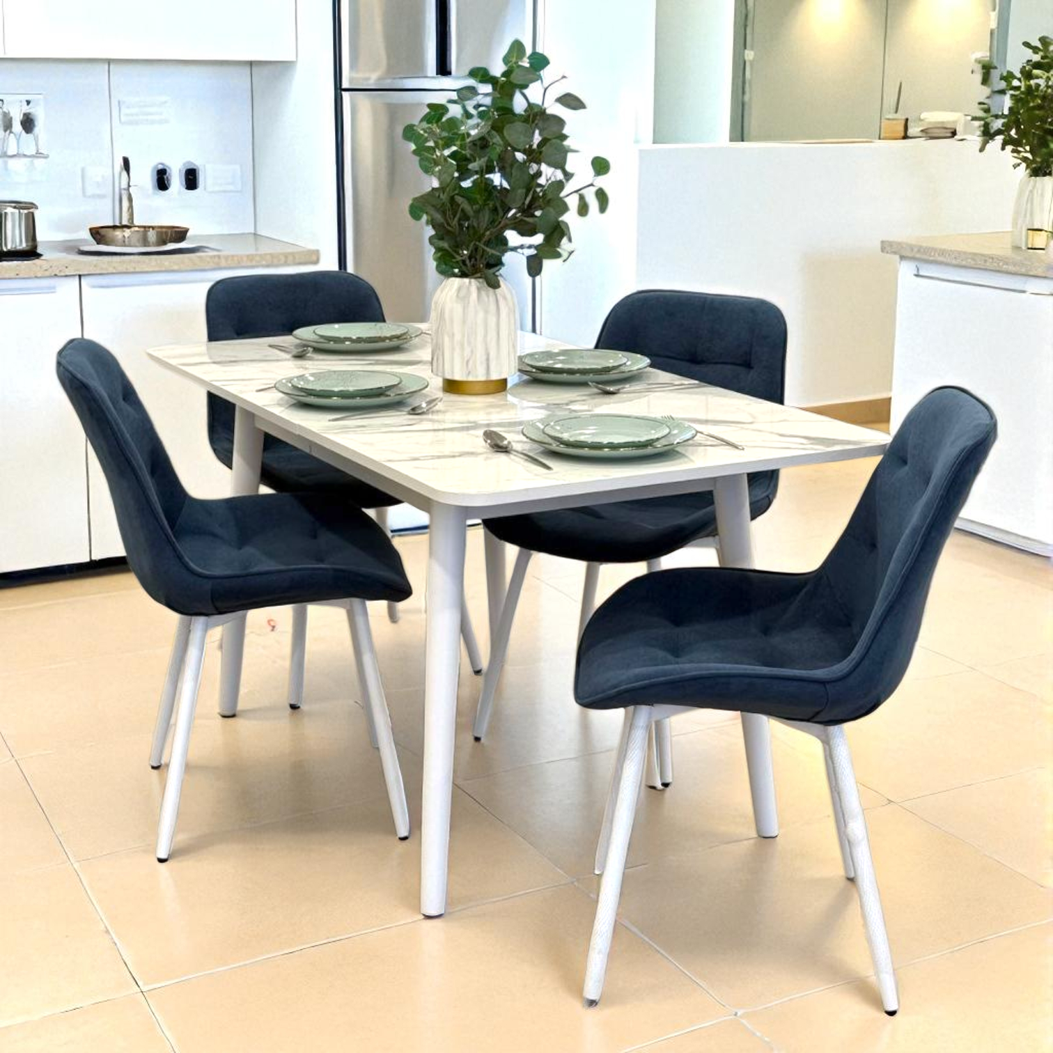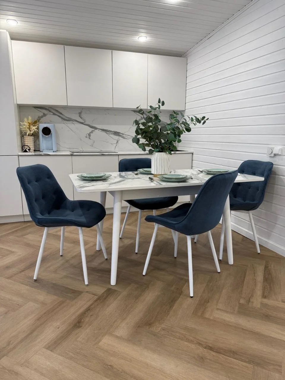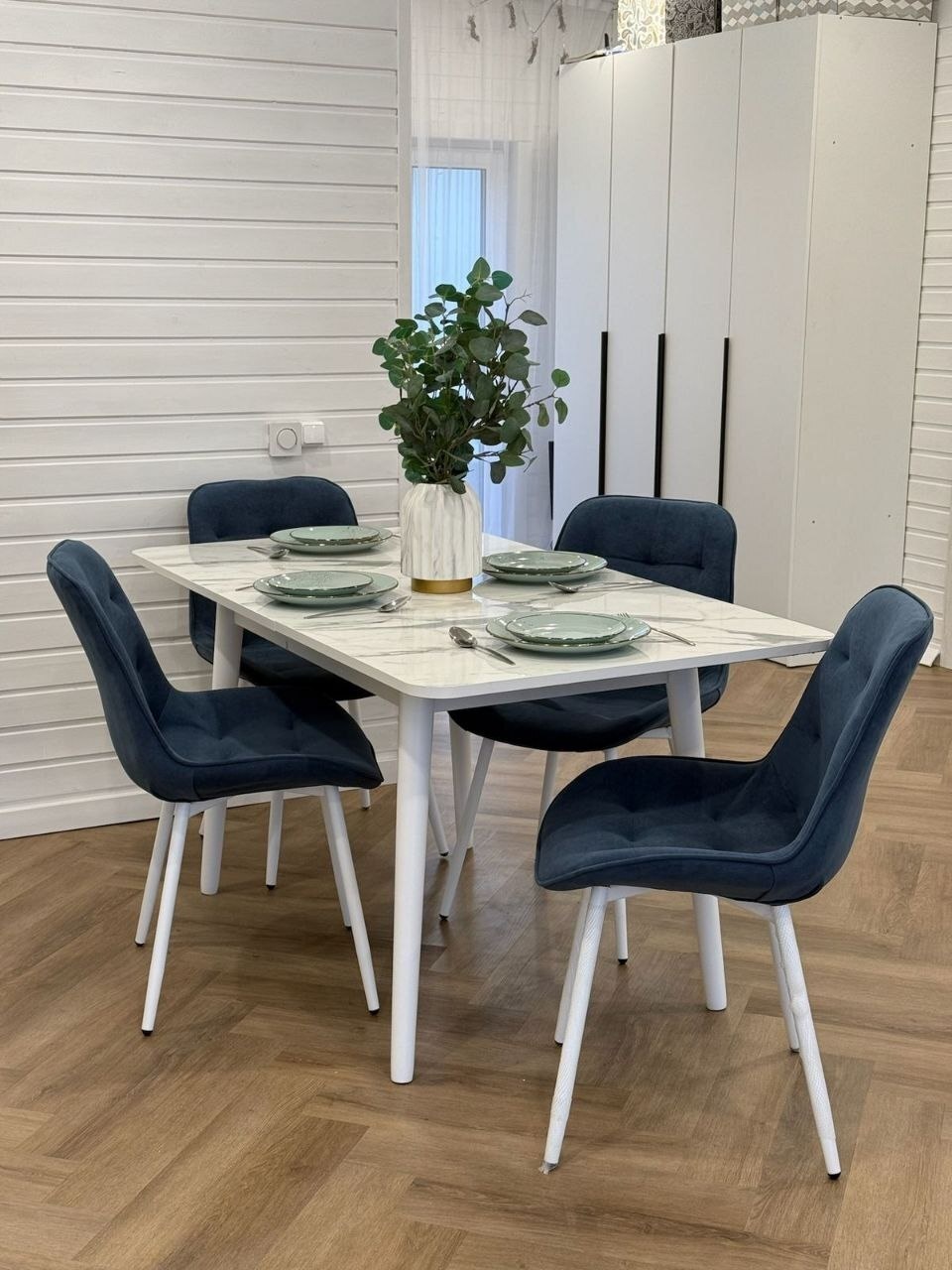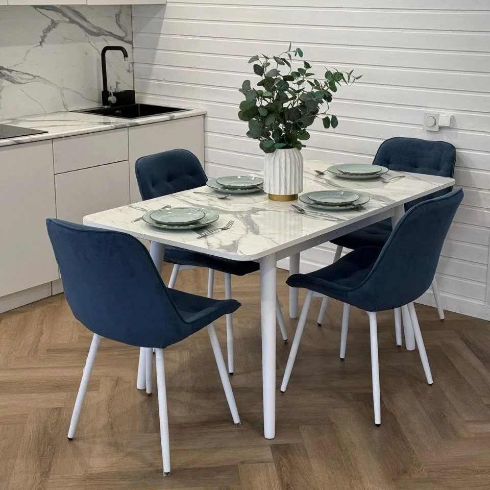 Обеденная группа NGVK стол белый мрамор стулья Бостон синие